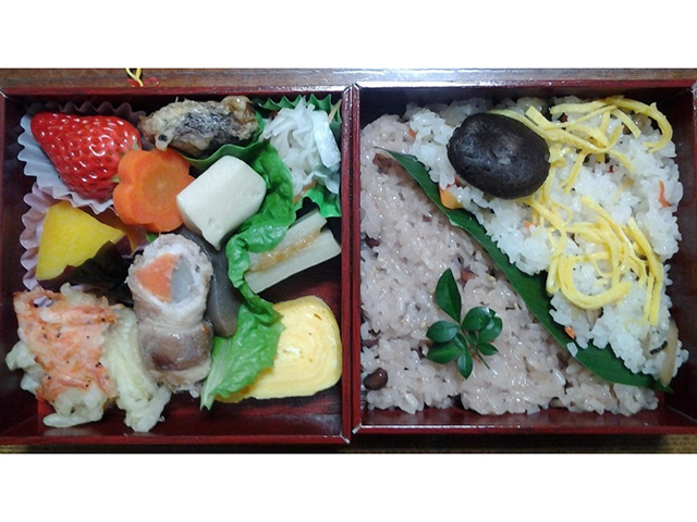 煎茶、大福、切り餅、赤飯、野菜 他